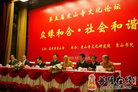 2011年11月12日上午,以“众缘和合·社会和谐”为主题的“第五届寒山寺文化论坛”,在苏州会议中心隆重开幕。来自全国一百多位文化研究学者和嘉宾出席了论坛大会。