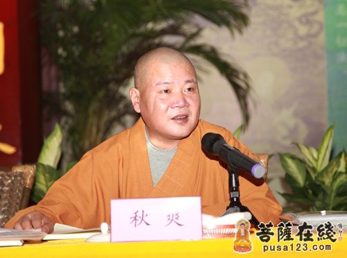 会议由江苏省佛教协会副会长兼秘书长秋爽大和尚主持。会议邀请了南京鸡鸣寺的永定法师、镇江大圣寺的昌法法师、无锡祥符禅寺的普俊法师、灵山慈善基金会的王文副秘书长、寒山寺的法荣法师、南通市佛教协会的俊才法师、徐州市佛教协会蒋守丰主任等七家佛教单位代表,他们在会上现场交流了各自在佛教慈善工作中的的成功经验。