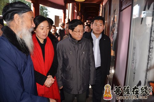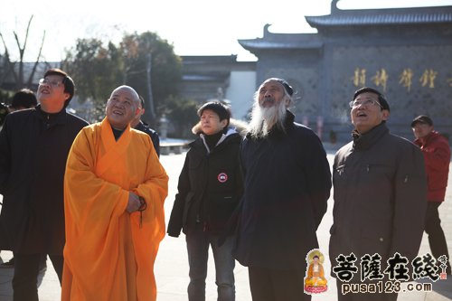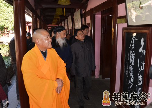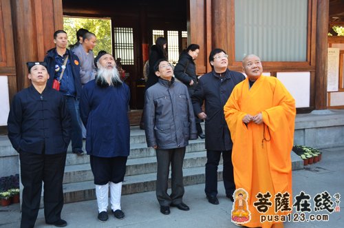 31日,早上9时,国家宗教局副局长蒋坚永、中国道教协会会长任法融道长,中国道教协会副会长、江苏省道教协会副会长张凤林道长等一行抵达寒山寺,秋爽大和尚至山门外迎接,并陪同参观了寒山寺大钟、大碑,以及寒山寺内珍贵的古碑。并至丈室亲切会谈。