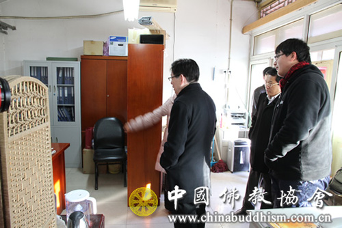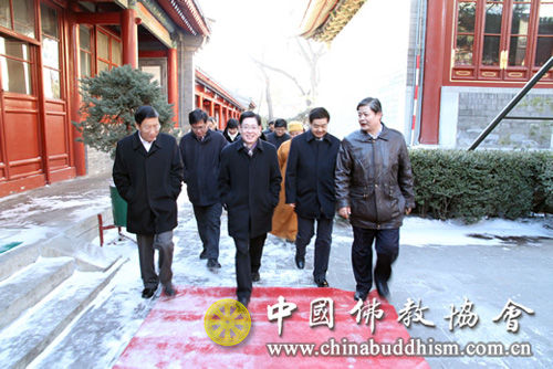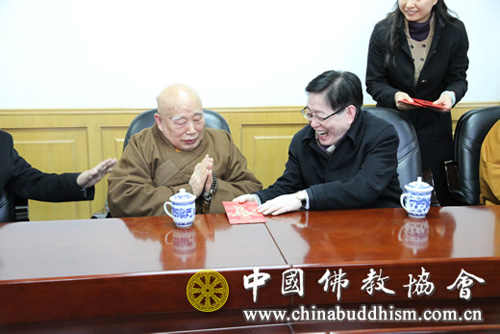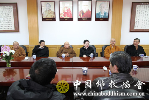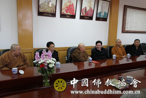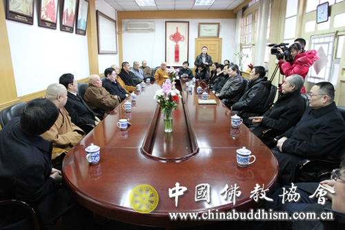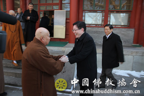 2013年2月4日上午9时,国家宗教事务局局长王作安,副局长蒋坚永、张乐斌等一行前往北京广济寺,拜访中国佛教协会,受到中国佛教协会会长传印长老等热情欢迎。
