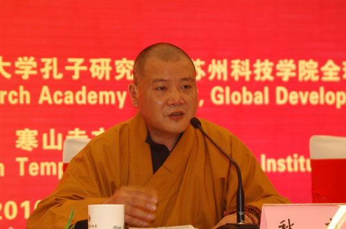 11月13至15日,为期三天的第四届寒山寺文化论坛·国际和合文化大会在苏州隆重举行。来自中国、美国、加拿大、日本、韩国和中国台湾等国家和地区的专家学者、法师等150多人参加大会。江苏省佛教协会副会长、苏州寒山寺方丈秋爽法师出席开闭幕式并致辞。论坛期间,与会学者围绕“和合人间·和谐世界”的主题,共同研讨和合文化,交流研究成果。