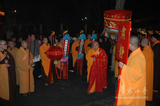 2008年2月6日(除夕夜)晚上11:30分,寒山寺隆重举行“钟声传四海,祈福满人间”迎春钟声祈福大法会。苏州及各地香客、信众约千余人聚集千年古刹寒山寺,聆听悠扬的祝福钟声。祈福法会由寒山寺监院光瑞法师主持。