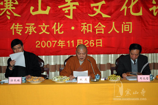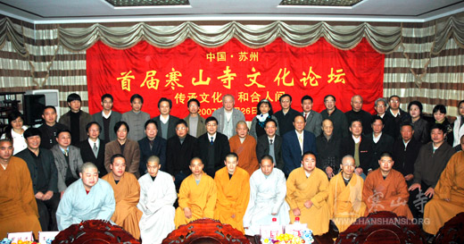 今天上午九时,由寒山寺主办的“首届寒山寺文化论坛”在我寺丈室隆重举行,来自寒山寺文化研究院、苏州各大高校的数十名教授、学者和寒山寺的诸位法师共同参加了首届论坛。