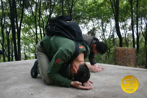 雨渐渐变大,社长宏奎法师依然带着大家虔诚朝山.
