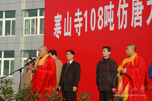 王科军局长在会上还强调了铸造寒山寺108吨仿唐大钟对传承佛教文化、光大钟声诗韵的文化底蕴以及发展地方经济的重要性和积极意义。