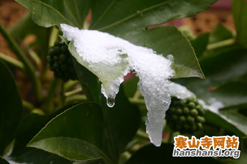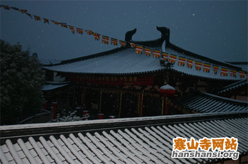 今天凌晨,当寺里的师父们开始新的一天早课修行时候,天空飘舞着洁净的雪花,一点一点地洒向大地,等师父们早课结束后,寒山寺已经被洒下的春雪披上了一层厚厚的衣裳,洁白无比。趁着白雪还没有融化,赶紧拍些照片,奉献给大家,愿大家一起分享来自寒山古刹的美景——孟春瑞雪。
