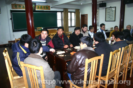 1月22日中午12时许,各位社员在佛性法师和青年佛学社心舟等几位居士的陪同下,从佛学社办公室来到寒山书院的教学楼1号教室,正式开始“迎新春茶话活动”,寒山书院正群法师和寒山寺维那悟灵法师出席茶话会,活动分五部份: