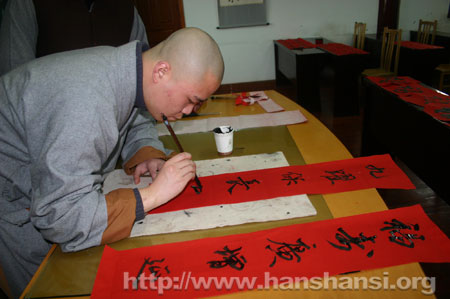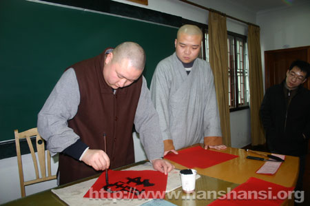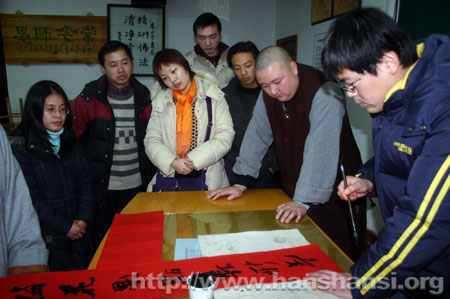 三、书赠春联:由佛性法师、正群法师、钱伟居士现场书写佛教吉祥春联;